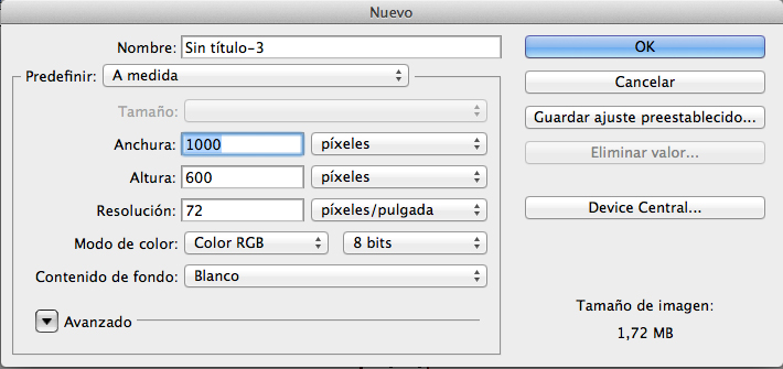 Modo de color: RGB: Utilizar para cuando sea una imagen que netamente usaras en tu PC o MAC.